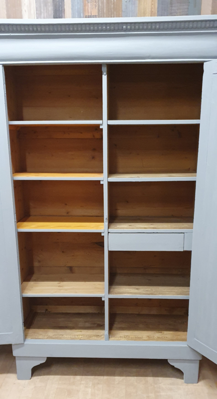 Brocante meidenkast: brocante Hollandse meidenkast of kledingkast in grijs